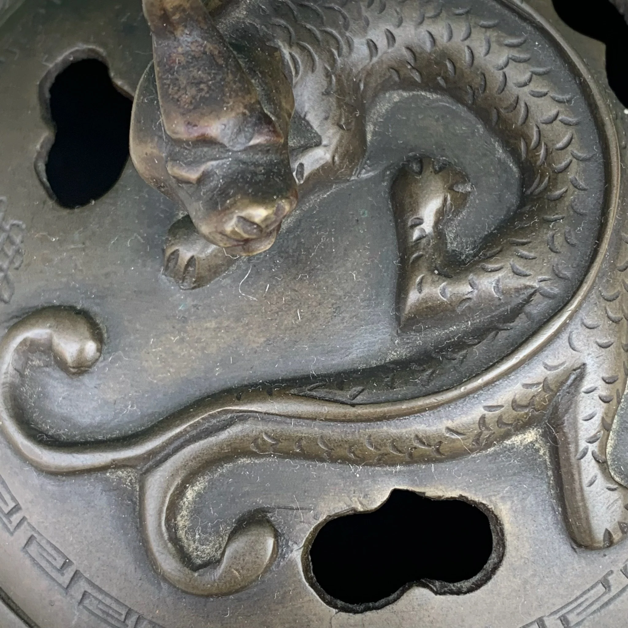 A circular bronze perfume burner, finely chiseled. China, Mid XIX Century.